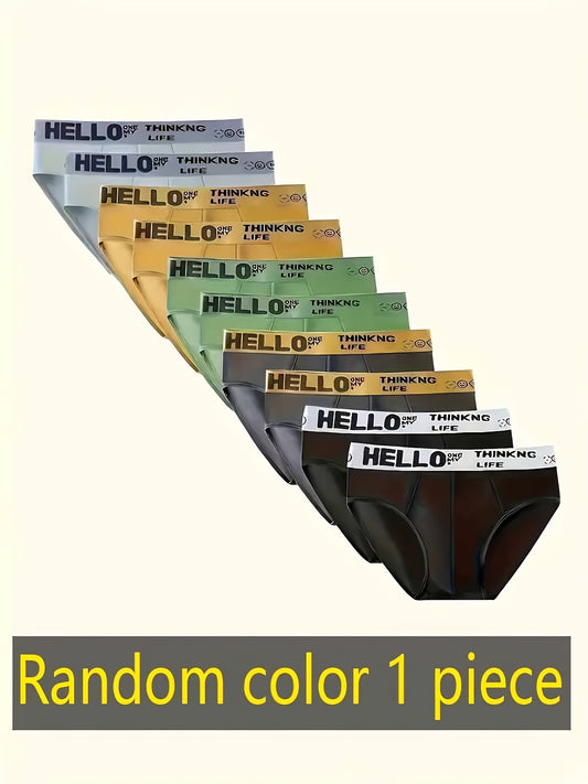 1/3/5pcs Men's High-Elasticity Boxer Briefs, Breathable Knit Fabric with "HELLO" Letter Print, Comfort Fit, Assorted Colors (Random Color Selection)