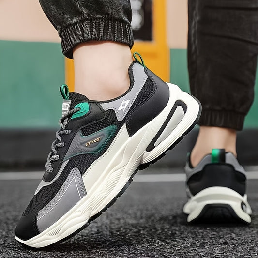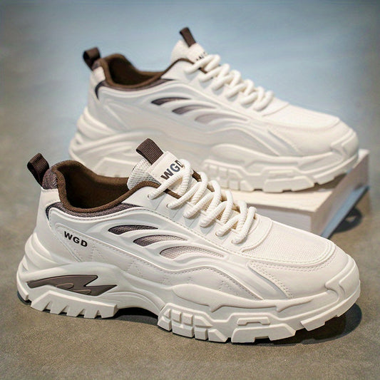Men'S Casual Sports Shoes - Thick-Soled Lace-Up Sneakers with Synthetic Upper, Cushioned EVA Insole PVC Sole for Outdoor Hiking, Running, Gym - All-Season Comfort in Beige/Black, Brown/White, Green/White, Versatile Trainers