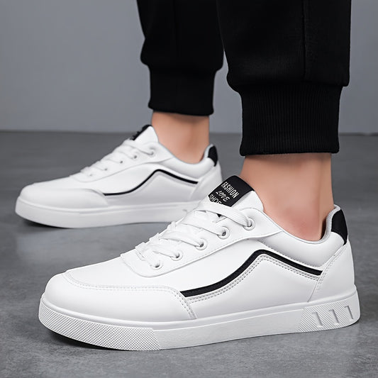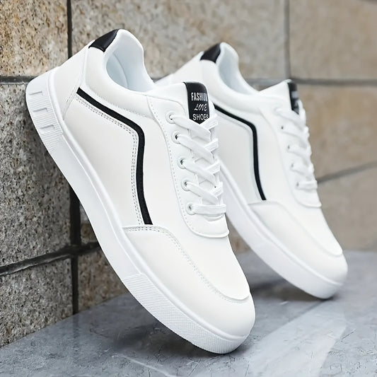 Men'S Fashion Solid Color Low Top Sneakers, Comfortable Non-Slip Street Style Lace-Up Casual Sports Shoes, Preppy Striped Design, Faux Upper, Fabric Inner, PVC Sole, Cloth Insole, Round Toe for Outdoor Activities - Spring/Sum
