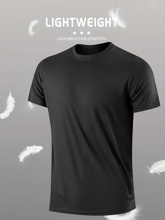 Men's Lightweight Sports T-Shirt - 100% Polyester, Moisture-Wicking, Breathable, Smooth Fabric, Round Neck, Short Sleeve, for Sports, Training, Casual, Party, Beach, Night Out - Unisex-Adult