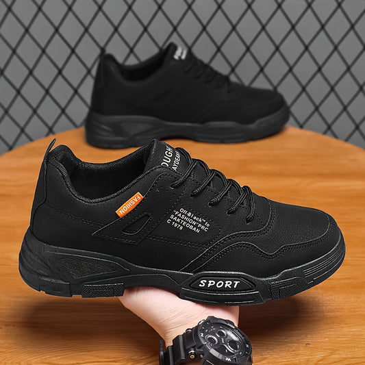 Men'S Lightweight Skateboard Sneakers, Retro Lace-Up Casual Sports Shoes, Comfortable Non-Slip Durable PU Upper Fabric Insole, Solid Color Design, Low Top Round Toe for Outdoor Activities, Casual Sports Shoes|Retro Laceup Des