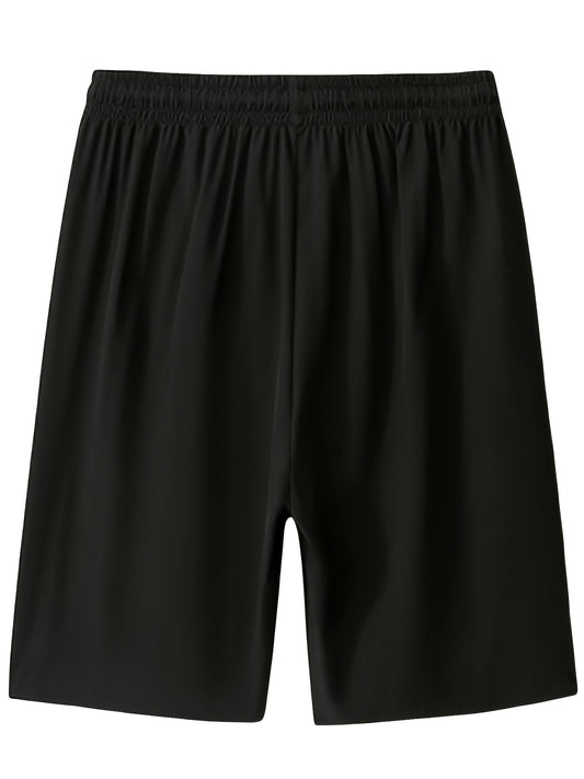 Men'S Summer Basic Shorts, Solid Color, Breathable Quick-Dry, Non-Stretch Polyester 100%, Regular Fit with Pockets, Lightweight 110g/m² Woven Fabric, Casual Sportswear
