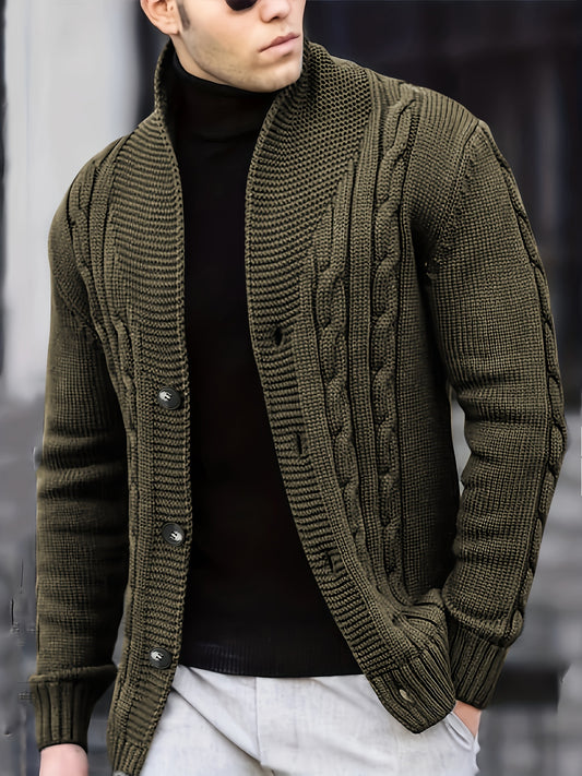 Men's Casual Knit Cardigan | Olive Green Acrylic Sweater | V-Neck with Button Closure | Textured Cable Knit Design | Machine Washable | Ideal for Autumn/Winter, Knit Sweater