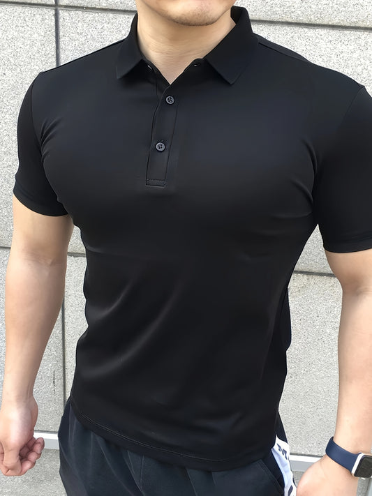 Men'S Performance Athletic T-Shirts - 100% Polyester, Casual Collar Style, Medium Stretch, Solid Color, Summer Season, Button Detail, Slim Fit, Knit Fabric, Quick-Dry, Breathable Short Sleeve Top