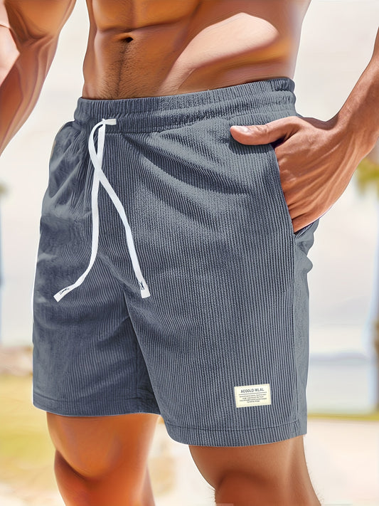 Pearson OBM Men's Corduroy Casual Shorts, White Drawstring, Polyester, Machine Washable, Slightly Elastic Fabric, Comfortable in Summer