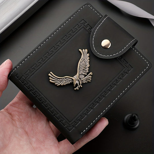 Fashion Eagle Wallet For Men, Zipper Snap Coin Credit Card Bag, Frosted PU Leather Clip For Men