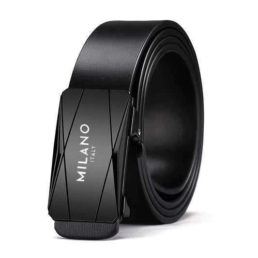 1pc Milano Italy Men's Automatic Buckle Belt - Black Faux Leather, Classic Design for Jeans & Dress Pants, Perfect Gift for Dad or Husband, One Size Fits All