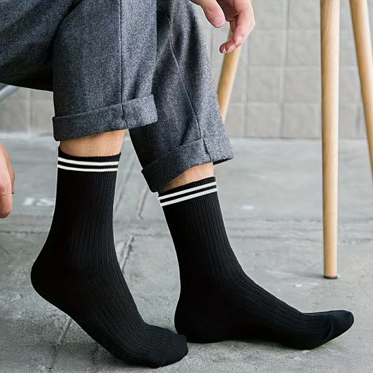 5/10 Pairs Men's Athletic Crew Socks, Striped Polyester Knit Fabric with 5% Spandex, Moisture-Wicking Casual Sports Tube Socks for Spring and Autumn