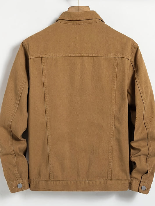 Men's Casual Brown Denim Jacket - Long Sleeve, Front Button Closure, Chest Pockets, No Stretch, Machine Washable, Classic Solid Color Design, Casual Outerwear | Classic Jacket Design | Durable Denim Fabric