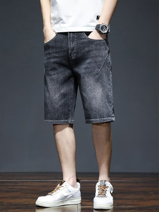Men'S Casual Denim Shorts, Solid Color, Slight Stretch, Regular Fit, Short Length, Cotton Blend (75% Cotton, 23% Polyester, 2% Spandex), Woven Bermuda with Pockets