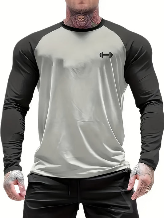 Men's Athletic Compression Long Sleeve T-Shirt - Quick-Dry, Breathable, with Graphic Print, Crew Neck, Stretch Fabric - Ideal for Running, Gym & Sports Activities, Gym Clothes