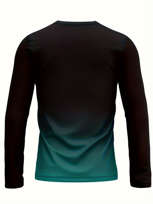 1pc Men'S Sports Compression Shirt, Geometric Gradient Lightning Pattern, Crew Neck, Polyester Knit, Medium Stretch, Skinny Fit, Breathable Muscle Tee for Running, Training, Hiking & Outdoor Activities, Four Seasons