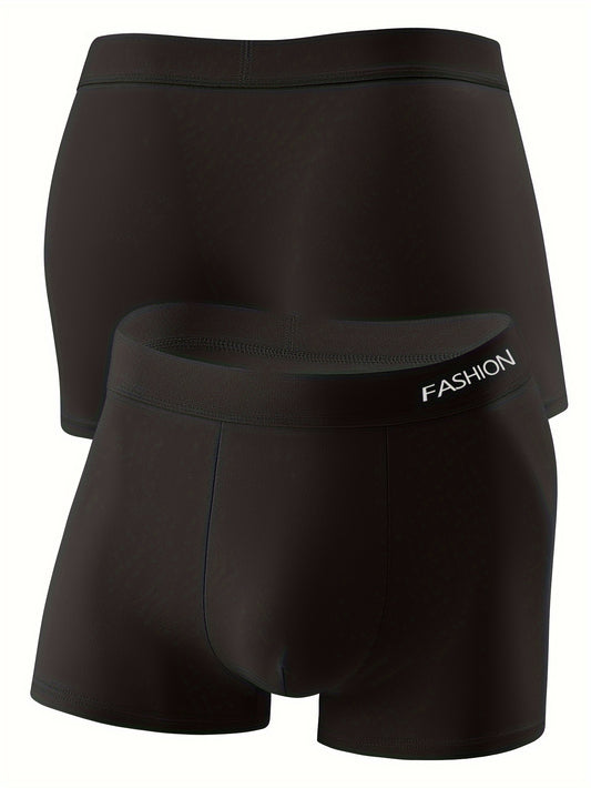 Men's Solid Color Boxer Briefs 4pcs, Polyester and Spandex Blend, Non-Transparent, Knit Fabric with Button Detail for Camping, Boxing, Print