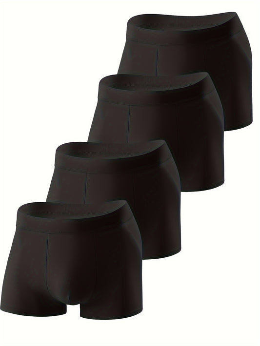 4pcs Men's Seamless Boxer Briefs - Soft, Breathable, High-Elasticity Sports & Casual Underwear with "UNDERWEAR" Waistband Print in Assorted Colors (Beige, Light Gray, Dark Blue-Gray, White)