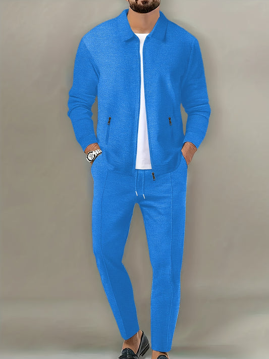 Men's Spring Waffle Knit Sportswear Set, European and American Style Casual Outfit