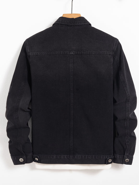 Men's Classic Denim Jacket - Casual, Non-Stretch Cotton Blend, Machine Washable with Lapel Collar