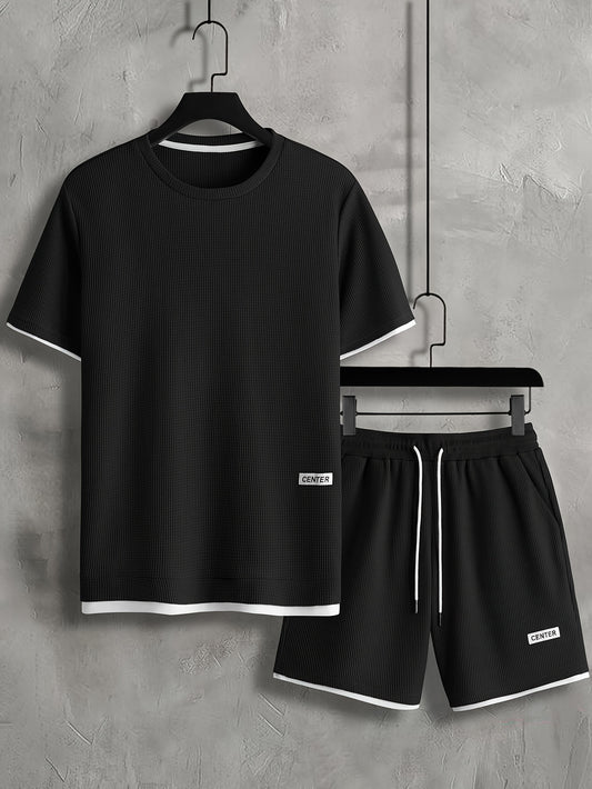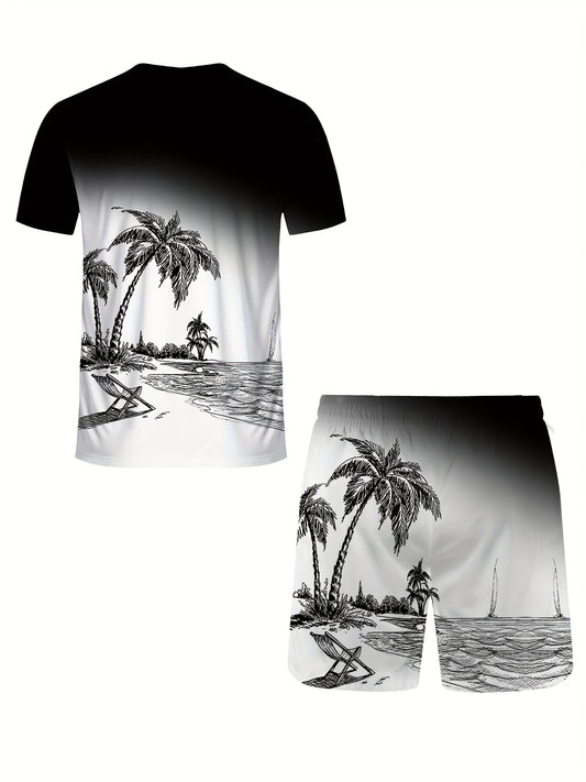 2Pcs Trendy Outfits For Men, Casual Crew Neck Short Sleeve T-shirt And Shorts Set For Summer, Men's Clothing Vacation Workout