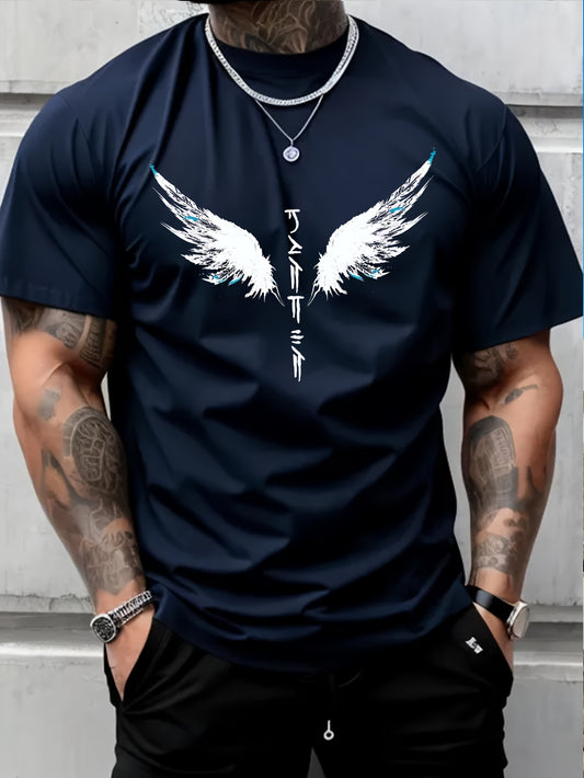 Wings Print Men's Creative Top, Casual Short Sleeve Crew Neck T-shirt, Men's Clothing For Summer Outdoor