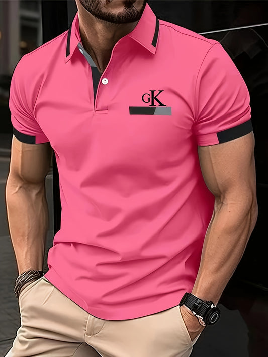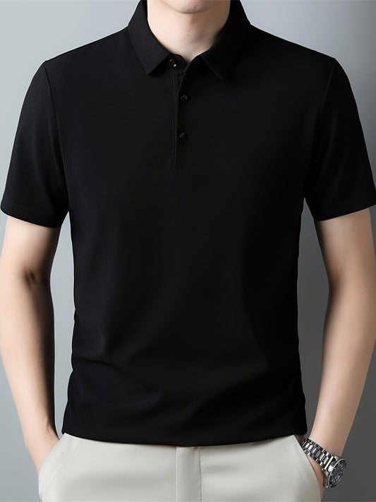 Men's Solid Short Sleeve And Lapel Collar Henley Shirt, Casual And Comfy Sports Tops For Summer Golf Wear And Outdoors Activities