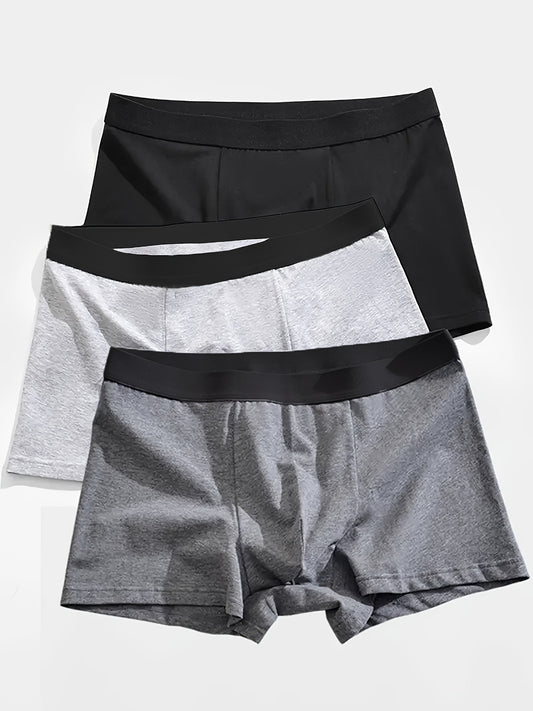 3pcs Men'S Solid Color Polyester Boxer Shorts for Casual Sports And Comfortable Underwear.