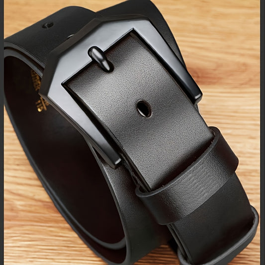 Men's Genuine Leather Belt - Adjustable Black/Brown Cowhide with Polished Alloy Square Buckle, Vintage Casual to Business Style, Versatile Men's Belt | Sophisticated Style | Durable Leather Belt