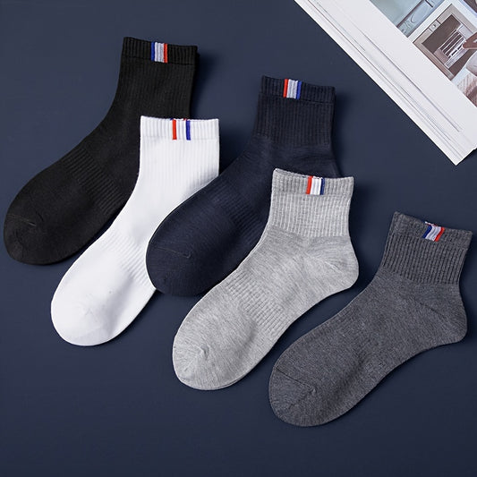 5/10 Pairs Of Men's Solid Sport Crew Socks, Breathable Sweat-absorbing Comfy Soft Casual Simple Style Socks All Seasons Wearing