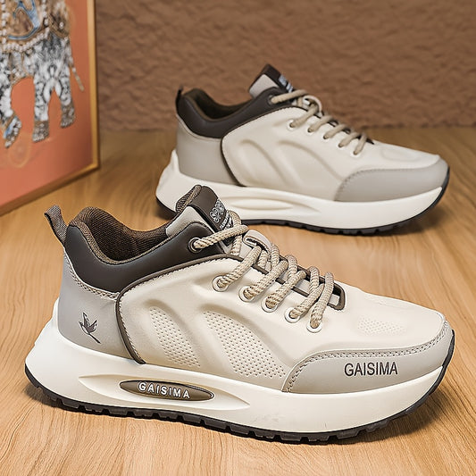 Men'S Casual Sports Shoes - Thick-Soled Lace-Up Sneakers with Synthetic Upper, Cushioned EVA Insole PVC Sole for Outdoor Hiking, Running, Gym - All-Season Comfort in Beige/Black, Brown/White, Green/White, Versatile Trainers