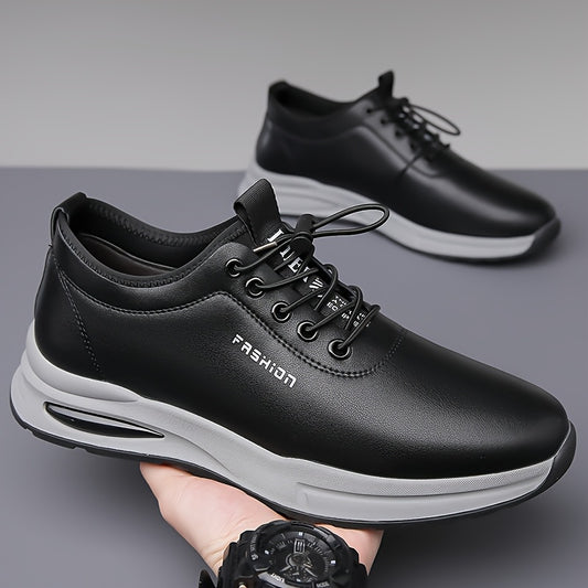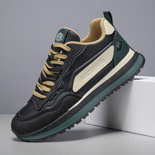 Men's Retro Sporty Casual Sneakers - Low-Top Breathable PU Upper, Cushioned EVA Insole Durable PVC Outsole - All-Season Comfort for Daily Wear, Running Casual Outings - Black