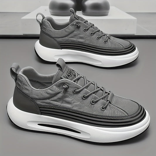 Men'S Fashion Classic Sneakers, Low Top Lace-up Athletic Shoes, Shock Absorbing Breathable Running Shoes, Durable Thick Sole Skateboard Shoes, Solid Color Graphic Design, Round Toe, Faux Upper/Sole, Fabric Inner, EVA Insole f
