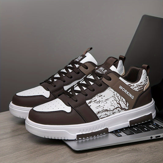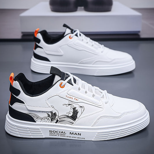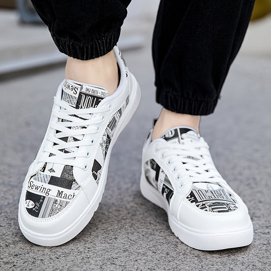 Men's Low-Top Skate Shoes - Breathable PU/Fabric Upper, EVA Cushioned Insole Durable PVC Sole - Lace-Up Design with Letter Print/Stripes/Solid Colors for Urban Streetwear Casual Wear
