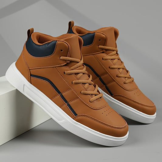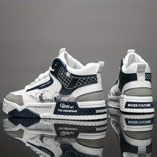 Men's High-Top Skate Sneakers - Comfortable, Non-Slip Casual Shoes for Outdoor Walking Jogging, Stylish Striped/Solid Design, Lace-Up, All Seasons
