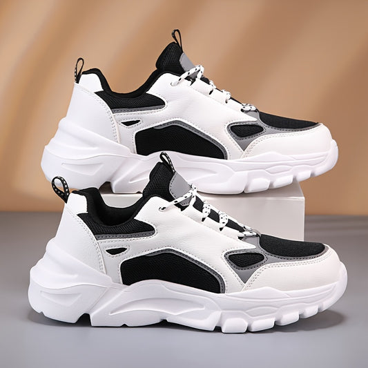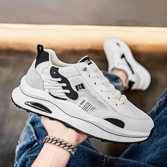 Men's Fashion Sneakers - Lightweight, Breathable Casual Shoes with Soft Rubber Sole, White Black Design, Comfortable Low-Top Lace-Up Style for Casual Attire