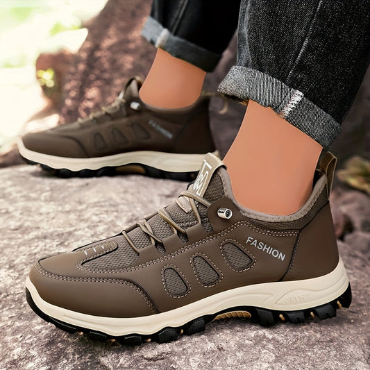 Men's Breathable Casual Running Shoes - All-Season, Stylish Lace-Up Sneakers with Rugged Tread for Hiking Casual Attire, Brown