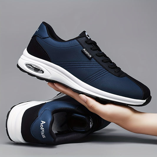 AOPLUS Men's Low-Top Sneakers - Navy Blue Black Sneakers, PU Upper Cushioned Rubber Sole for Gym, Training, Everyday - All-Season Lace-Up Shoes for Men, Gym Training Footwear, Sleek Sporty Design, Fabric Lined Interior