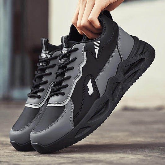 Men's Trendy Chunky Sneakers - Breathable Mesh PU Upper, Durable PVC Sole, Lace-Up Casual Sneakers in Gray, Black Orange, All-Season Comfort for Casual Attire
