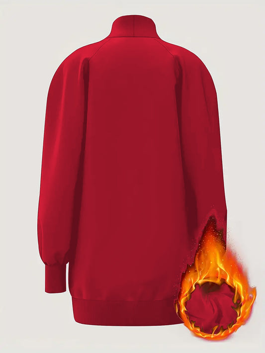 Women's Burgundy Red Plush Jacket - Luxurious -Like Collar &, All-Season Coat for Parties, Weddings, Casual Outfits - Hand Washable Non-Stretch Outerwear (No) - Elegant Winter-Ready Outer Jacket