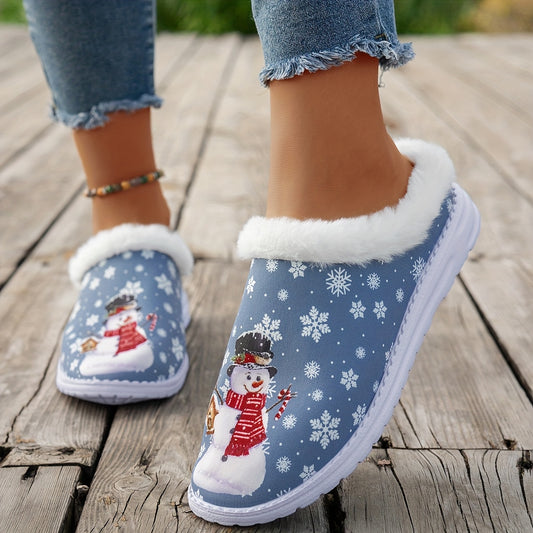Women's Winter Plush Flocked Slippers with Snowman & Snowflake Design - Cozy Indoor/Outdoor House Shoes, Soft Sole & Warm, 4 Colors (Green, Red, Purple, Pink) - Wide Widths Available for Cold Floors