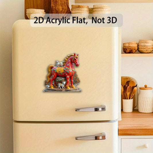 1pc Chinese New Year Horse & Lamb Fridge Magnet - Red/ Traditional Chinese Lamb Cart Design, Acrylic Strong Clasp for Fridge, Freezer, Metal Cabinets - Vintage Asian-Inspired Decorative Sticker for Notes, Reminders, Kitchen,