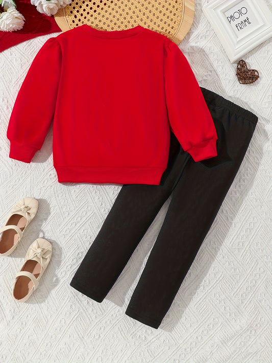 Youth Two-Piece Set: Fashionable Solid Color Round Neck Bow-Decorated Half-Slit Long Sleeve Sweatshirt + Solid Heart Pattern Ankle-Length Tight Pants Autumn Casual Pants Outfit, Perfect for Outdoor