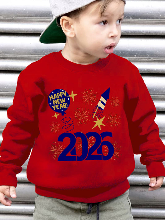 Boys' 2026 New Year Rocket & Fireworks Print Sweatshirt - Winter Warm Long Sleeve Sweater with 2026 Number Design, Casual Round Neck Pullover for Christmas & Parties ( to)
