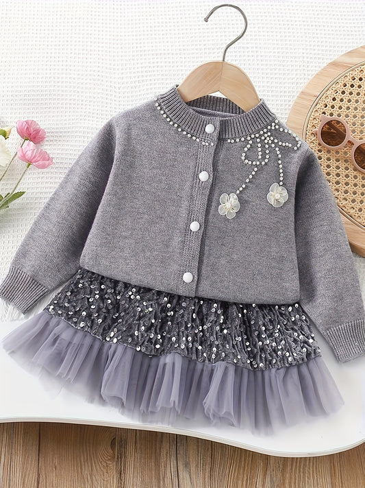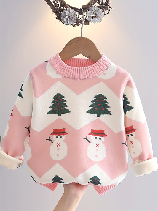 Girls' Winter Jacket with - Warm Long Sleeve Soft Sweater Coat, Round Neck & Placket, Hand Washable Cozy Outerwear for Christmas, New Year, & Play ( to) - Non-Bulky