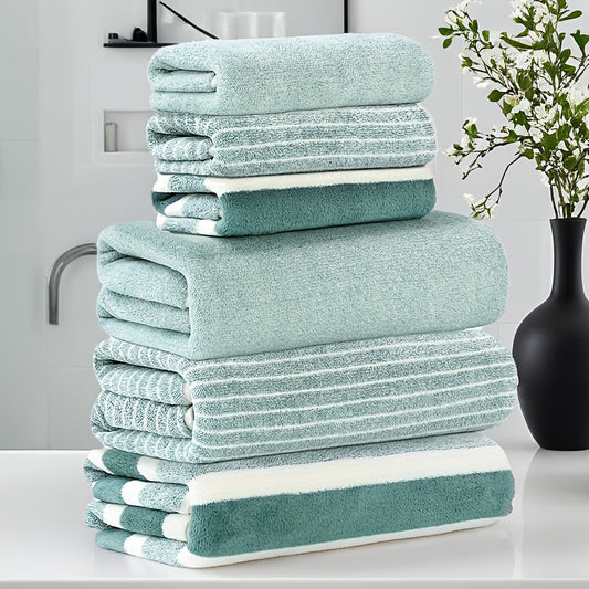 Ultra-Soft 6pcs Towel Set - Includes 3 Bath & 3 Bath Towels, Thick, Absorbent Coral Fleece, Skin-Friendly Polyester Blend for Bathroom Essentials, Combination Set, Mixed