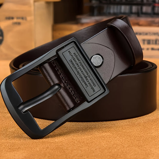 2pcs Men'S Premium Faux Leather Belt with Vintage Square Alloy Buckle - Double-Sided Durable Black Business Casual Belt, Multiple Sizes, Ideal Father'S Day Gift