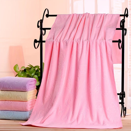 1pc Ultra Fine Microfiber Bath Towel, Soft and Durable, Thickened Absorbent, Bear Print, for Home & Beach Use, Commercial Cleaning, Various Colors