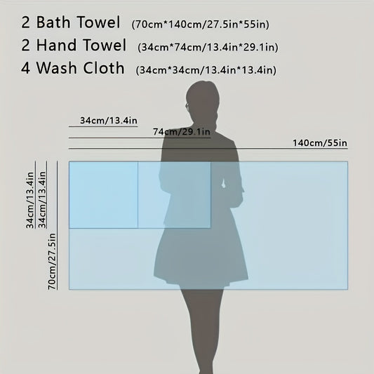 8pcs Chevron Stripe Towel Set, Quick-Dry Absorbent Bathroom Towels, 2 Bath Towels 2 Hand Towels 4 Washcloths, Polyester 280gsm, for Home, Hotel, Spa - Bathroom Essentials