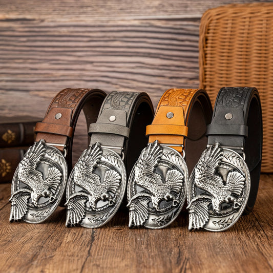 Oval Eagle Large Buckle Belt, Embossed PU Leather Belt, Men's Belt, Ideal choice for Gifts
