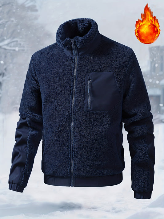 Men'S Heavyweight Fleece Jacket - Thermal Winter Coat with Stand Collar, Zipper Closure, Front Pockets - Brown/ - Cold Weather Outerwear for Everyday & Formal, Winter Jacket, Casual Outerwear, Durable Polyester, Seasonal Fash