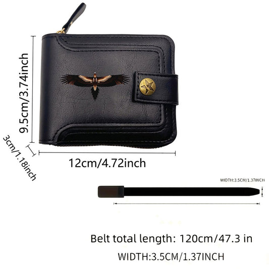 2pcs Men's Belt and Coin Purse Set, Wedge-Tailed Eagle Series Print, Exquisite Design, High-End Business Essential, Unisex Fashion Accessory for Daily Use, Perfect Gift for Father