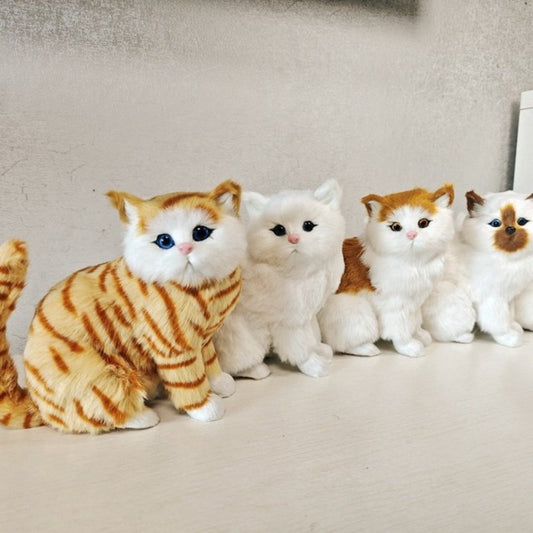 Simulation Cat Toys Featuring Five Types of Cats: Persian, Black, Spotted, And Other Realistic Animal Designs.
