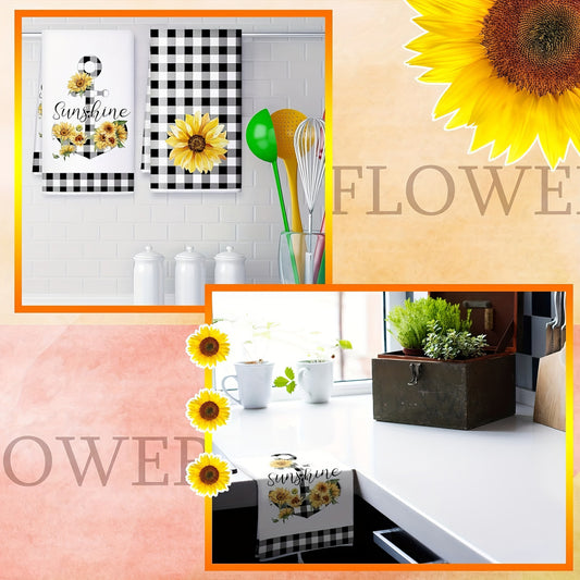 4pcs Sunflower Kitchen Towels, Decorative Dish Towels, Funny Hand Towel Absorbent Kitchen Cloths, Buffalo Plaid Tea Towels, Housewarming Gifts 45.72 X 71.12 cm, Yellow